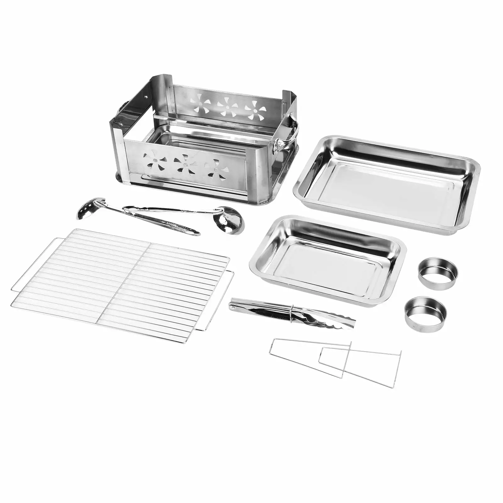Barbecue Grill Thickened Stainless Steel Grilled Fish Stove Charcoal Alcohol Grill Rectangular Grill Fish RackVentilated with Pull Handle