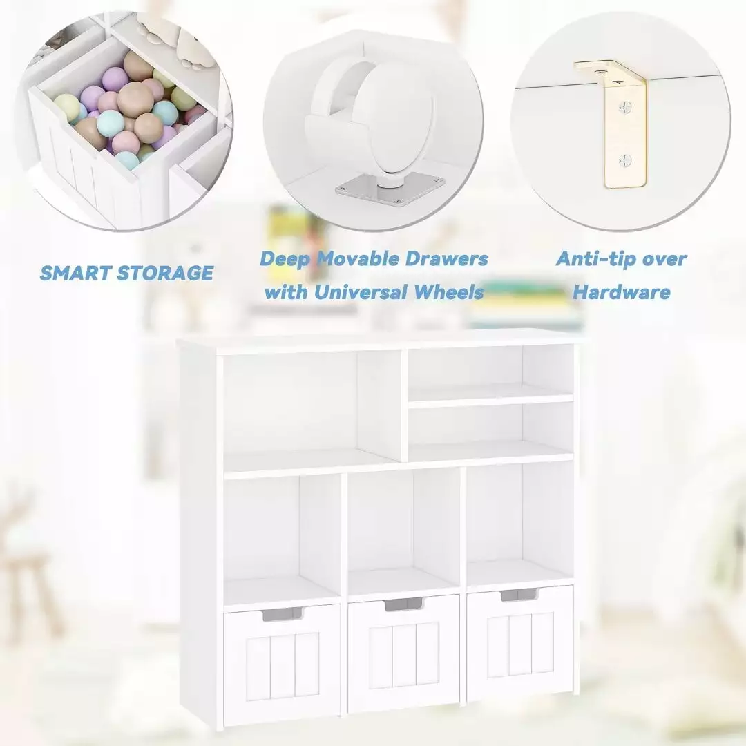 - Featuring 6 compartment cabinets and 3 movable drawers. this toy organizer efficiently stores books. toys. and art supplies. helping to keep kids’ rooms organized and tidy.