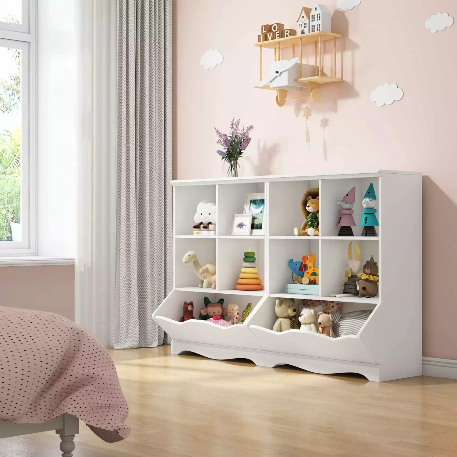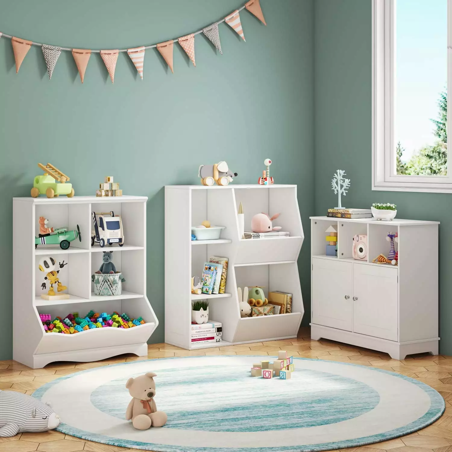 Modern Style: Brimming with modern charm. this toy storage has white varnish elements. wave-based and elegant beveled edges for a decorative touch. It’s a perfect piece of furniture for your living space
