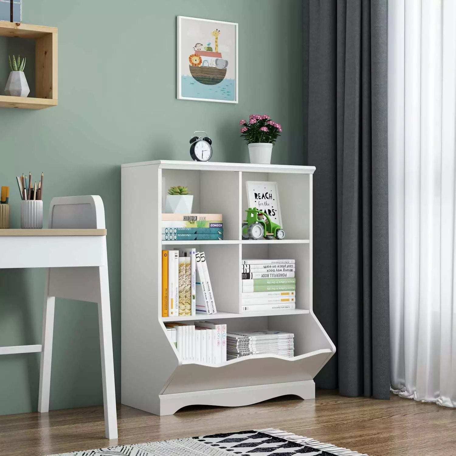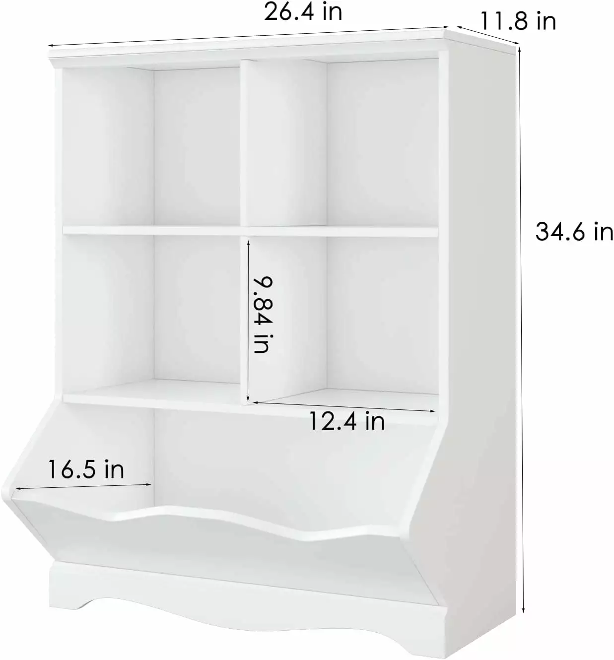 Large Capacity: The kid’s bookcase has a wide top to display a lamp. clock. and personal knickknacks. 4 cubbies and 1 large bin offer a funny way to store your favorite lego. small car model. dolls. or books