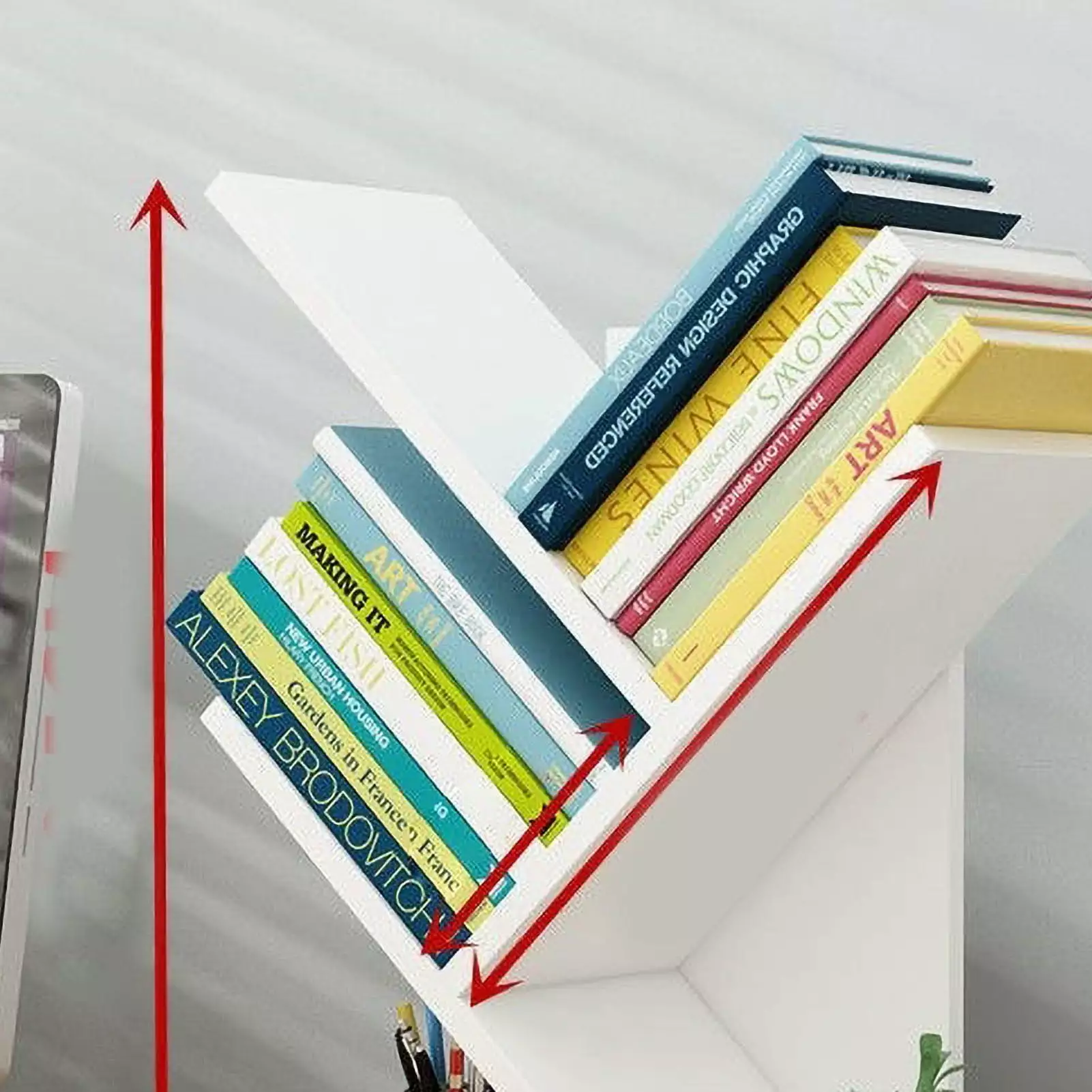 1SPACE SAVING: Tree bookshelf has 3 open shelves to hold a large number of books and other decorative items while saving space with a small footprint. 2INGENIOUS: Floor standing bookcase features a treeshaped design that is full of creativity. a wide support area and a sturdy loadbearing base to keep the shelves balanced. 3NO FADING: Book storage rack is made of excellent solid wood. long lasting use without fading. fine polishing easy to clean. neat and sturdy. 4COLOR OPTIONAL: Book storage organizer shelves have two colors to choose from. simple and stylish. making full use of your desk space and keeping your desk tidy. 5SUITABLE PLACE: Mini bookshelf is perfect for table. writing desk. desk. TV stand or countertop. perfect for apartment. narrow space. classroom or corner.Tree Bookshelf Solid Wood Ingenious 3 Tier Space Saving Book Storage Organizer Shelves for Office Home School White
