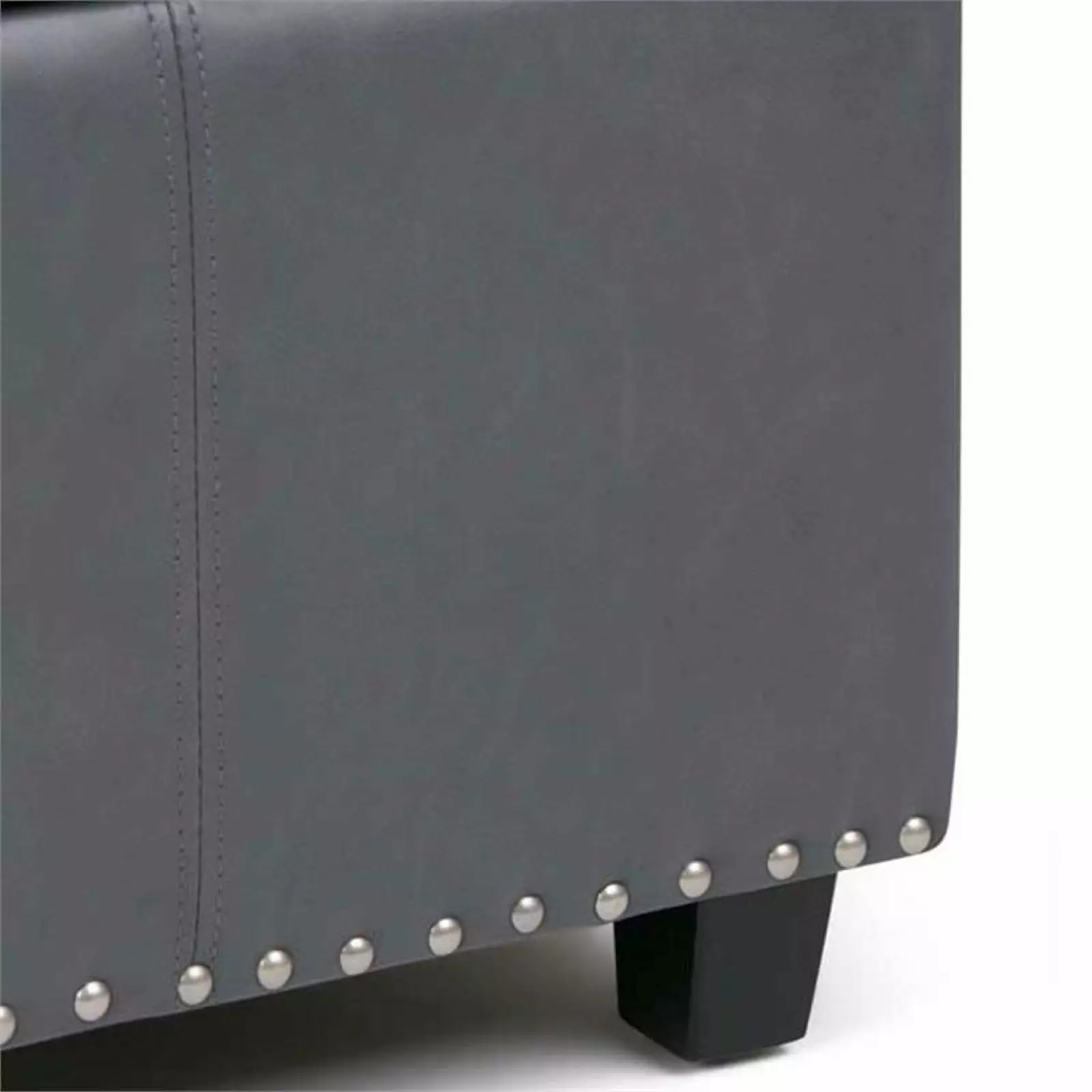 - Transitional design includes top stitching detail and nail head trim