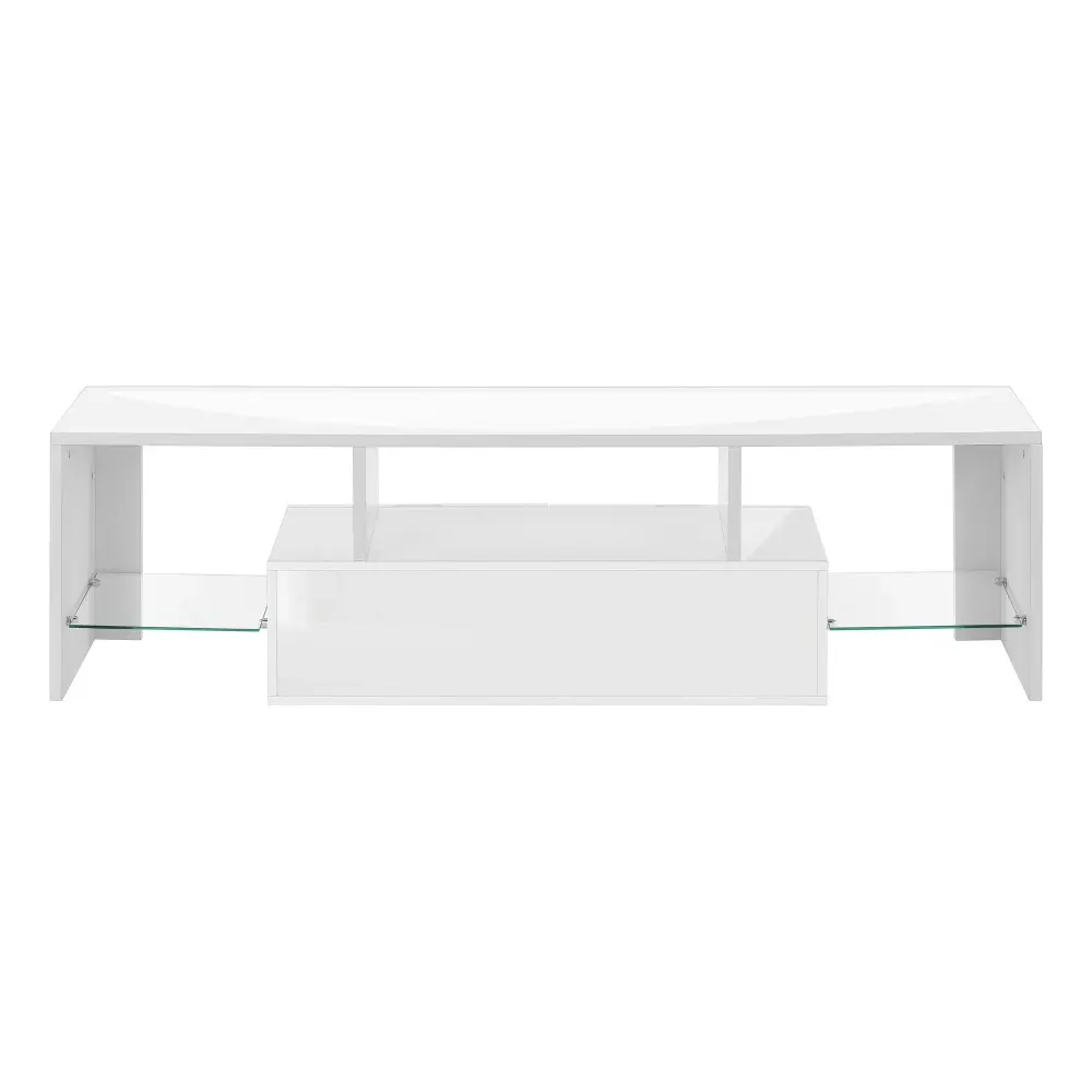TV Stand, Console, Media Entertainment Center, Storage Cabinet, Glossy Contemporary & Modern – White