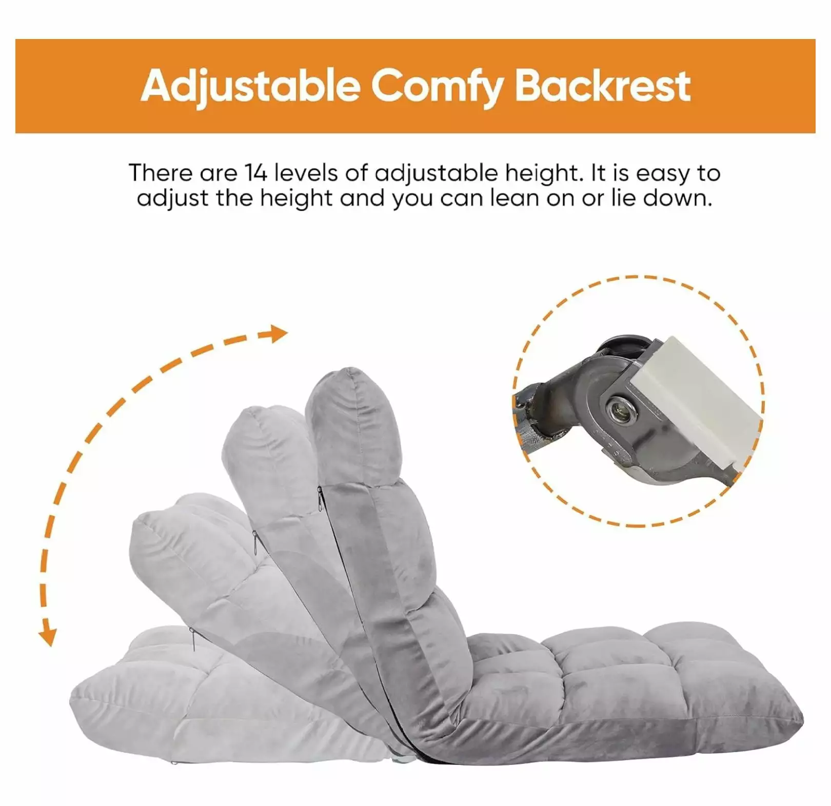Features: – Comfortable and soft. easy to remove. environmental protection and health. – 14 adjustment positions for you to set the sofa chair up. so that you can enjoy your activity in the most precise and supportive position. Relieving back and neck pressure well! – Folding design. easy to storage. save space. mall footprint. lightweight and easy to carry. – Perfect for any room. such as kid’s bedroom. bedroom. children’s playroom. home officestudy. laundryutility room. living room. sunroom. – Perfect for playing games. reading books. watching movies. resting etc. – Classic gray color. and simple. and any of room are very compatible. Specifications: Color: Gray Materials: Soft Plush Fabric+ Premium Polyester Cotton Flat Dimensions: 40.75 (L) x 19.3 (W) x 4.73 (H) Folded Dimensions (90 degree): 19.3 (L) x 18.5 (W) x 18.1 (H) Cushion Thickness: 4.73 Net Weight: 6.06lbs2.75kg Max. Load Capacity: 255lbs115kg Adjustable Angle: 0°-84.5°.14 positions optional Package includes: 1 x Floor chairTyslan Gaming Floor Chair Adjustable 14-Position Floor Sofa Bed Foldable Floor Cushions Seating Video Game Chairs Bean Bag Chair Reading Chair for Adults Kids Teens for Bedroom Living Room Indoor.Grey