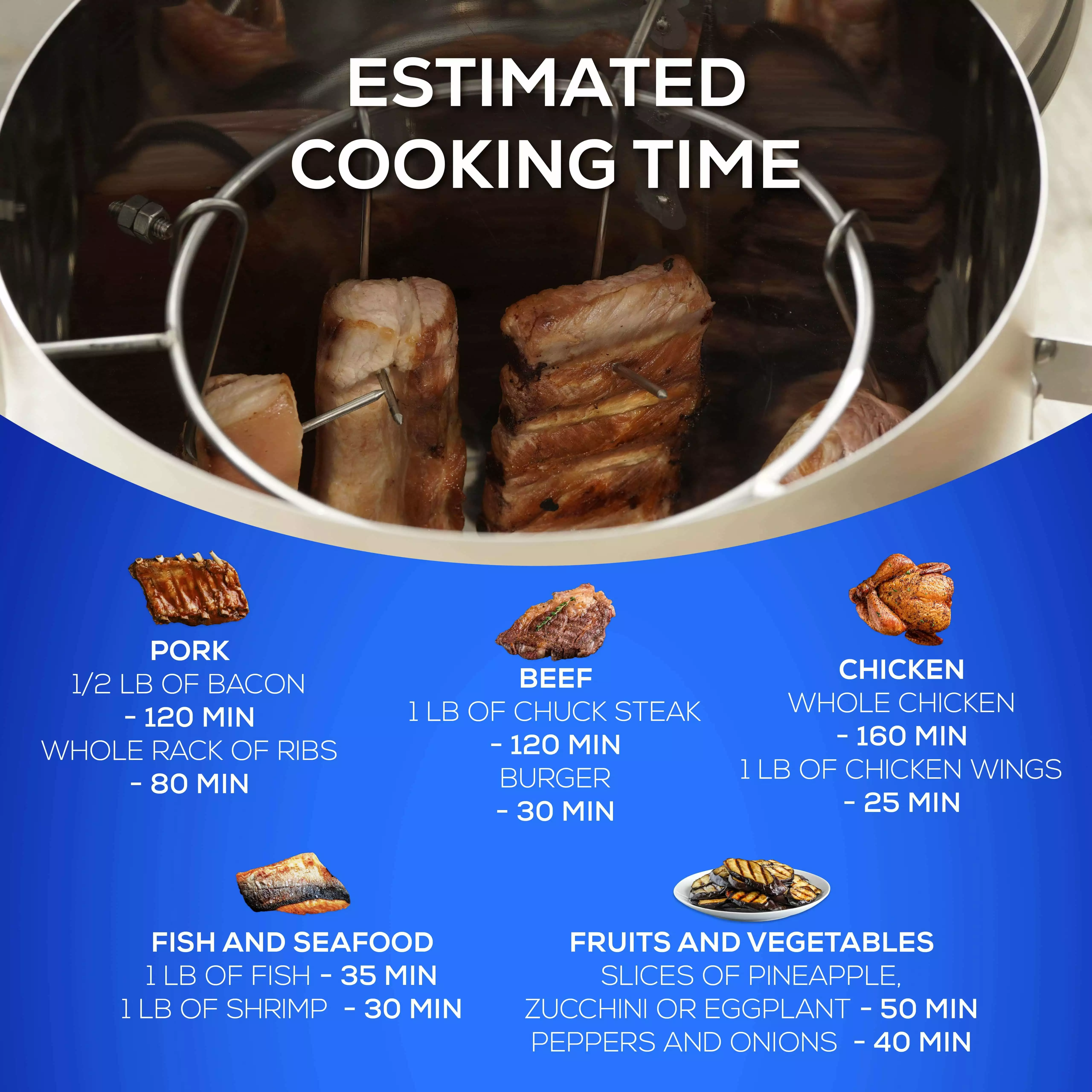 - Versatile Cooking: This amazing Small Meat Smoker is designed to prepare several slow cooking meals with the best taste. From meat to vegetables. Universal is your best choice to grill and smoke pork. beef. chicken. fish. seafood. fruits. vegetables. and more.