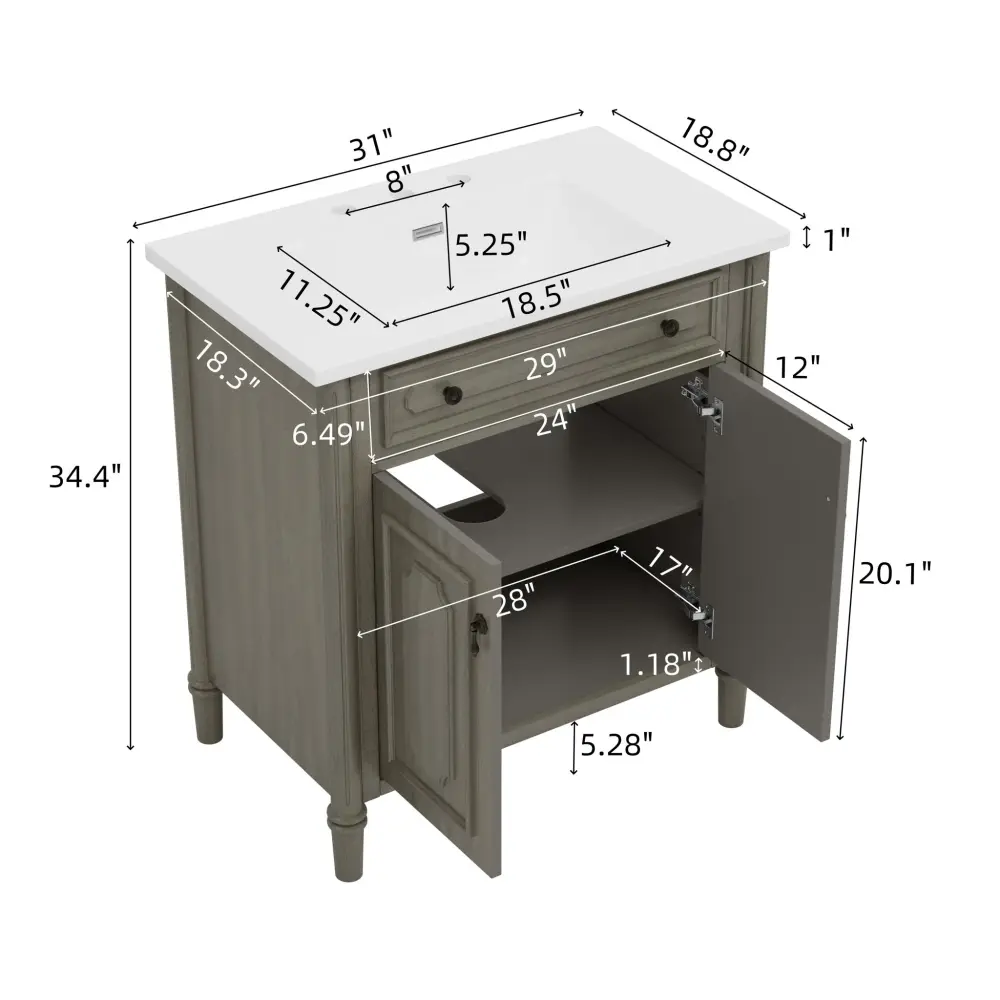 Vintage Bathroom Vanity With Sink, Rustic Cabinet With Soft Close ★ Wall Anchors Included for Secure Mounting ★ Locking Mechanism with Hidden Keyhole → Secure Your Medications Safely