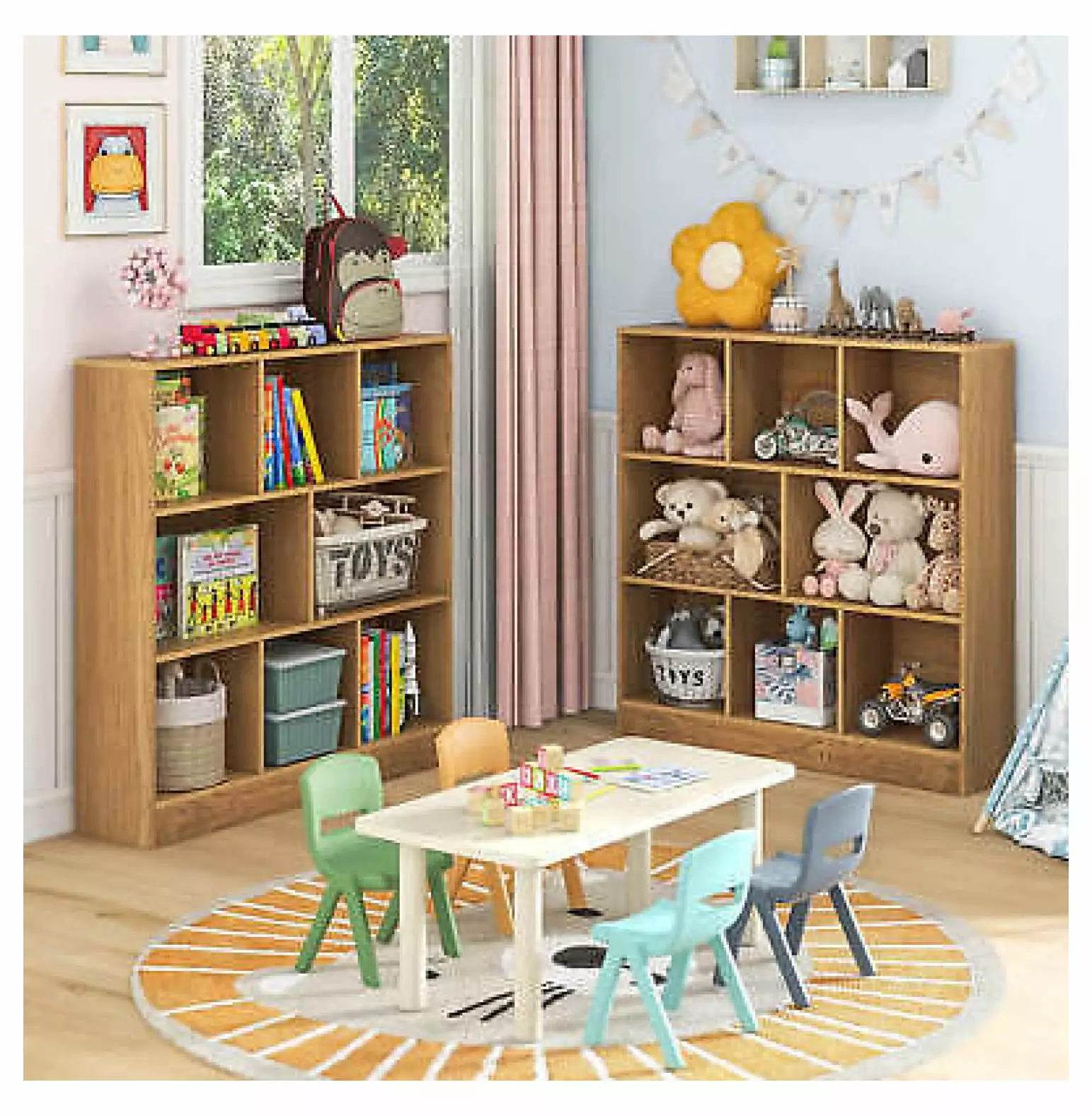 Color: Natural Material: Engineered Wood. MDF Overall Dimensions: 39.5" x 9.5" x 41"(L x W x H) Dimension of Large Cube: 19" x 8.5" x 12" (L x W x H) Dimension of Small Cube: 12.5" x 8.5" x 12" (L x W x H) Height of Bottom Base: 3.5" Net Weight: 42 lbs Weight Capacity of Top: 132 lbs Weight Capacity of Large Cube: 44 lbs Weight Capacity of Small Cube: 22 lbs Total Weight Capacity: 350 lbs Package Includes: 1 x Toy Storage Organizer 1 x User PRODUCT DETAILS: Description: This toy storage organizer enhances your child’s play area organization. With child-friendly height design. children can easily access and put away toys independently. fostering responsibility and organization. The thickened board construction ensures stability and durability. while the carefully crafted surface prioritizes safety. Say goodbye to potential dangers! 2 anti-toppling kits secure the bookcase to the wall to prevent tipping. Encourage your child to learn the importance of tidiness and organization with our playful cube bookcase. Features: 8 open cubes provide ample storage and display space for items Spacious top keeps ornaments. photos. and baskets in order A practical bookcase to develop kid’s good habit of organization Kid’s friendly height provides easy access to toys and books Thickened board shows perfect workmanship and long-lasting use Strong bottom base enhances great stability and support Non-slip foot pads the floor from scratches Waterproof surface for easy maintenance and cleaning Equipped with 2 anti-toppling kits for safe use Ideal for kid’s room. living room. daycare and classroom Can be used as a bookshelf. display stand. toy cabinet or storage shelf Specifications Color: Natural Material: Engineered Wood. MDF Overall Dimensions: 39.5" x 9.5" x 41"(L x W x H) Dimension of Large Cube: 19" x 8.5" x 12" (L x W x H) Dimension of Small Cube: 12.5" x 8.5" x 12" (L x W x H) Height of Bottom Base: 3.5" Net Weight: 42 lbs Weight Capacity of Top: 132 lbs Weight Capacity of Large Cube: 44 lbs Weight Capacity of Small Cube: 22 lbs Total Weight Capacity: 350 lbs Package Includes: 1 x Toy Storage Organizer 1 x User Contact & Returns: If you have questions about purchases from us. please feel to contact us through Walmart’s Message Center. Items should be returned in their original product packaging and all accessories in shipment must be included if you would return the item. Shippment: Standard