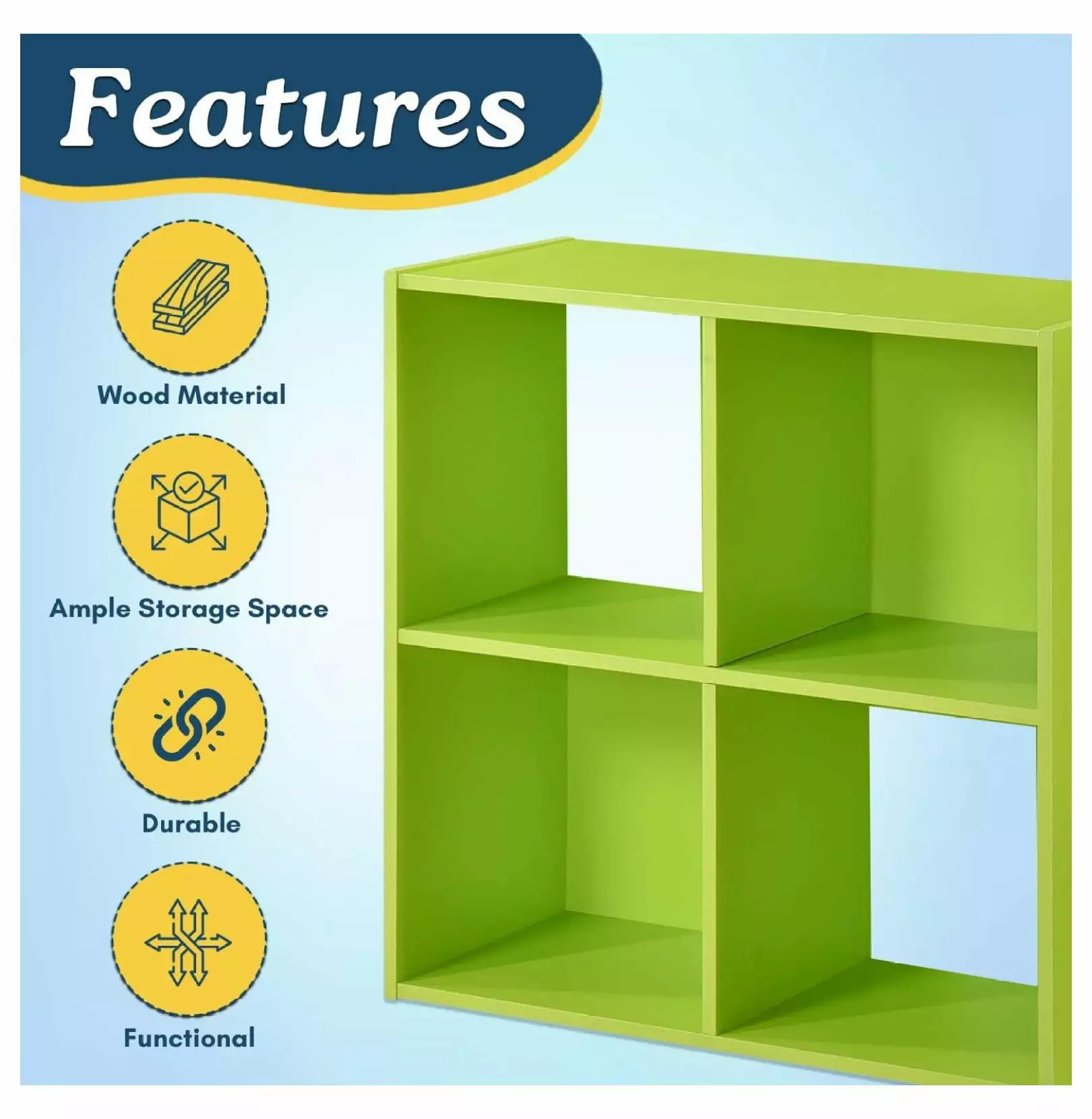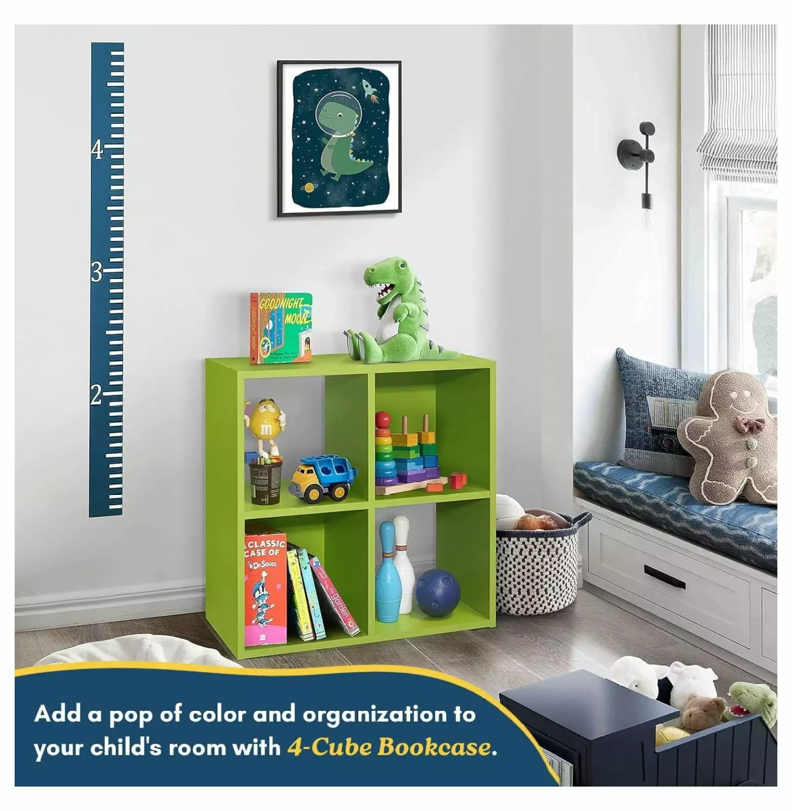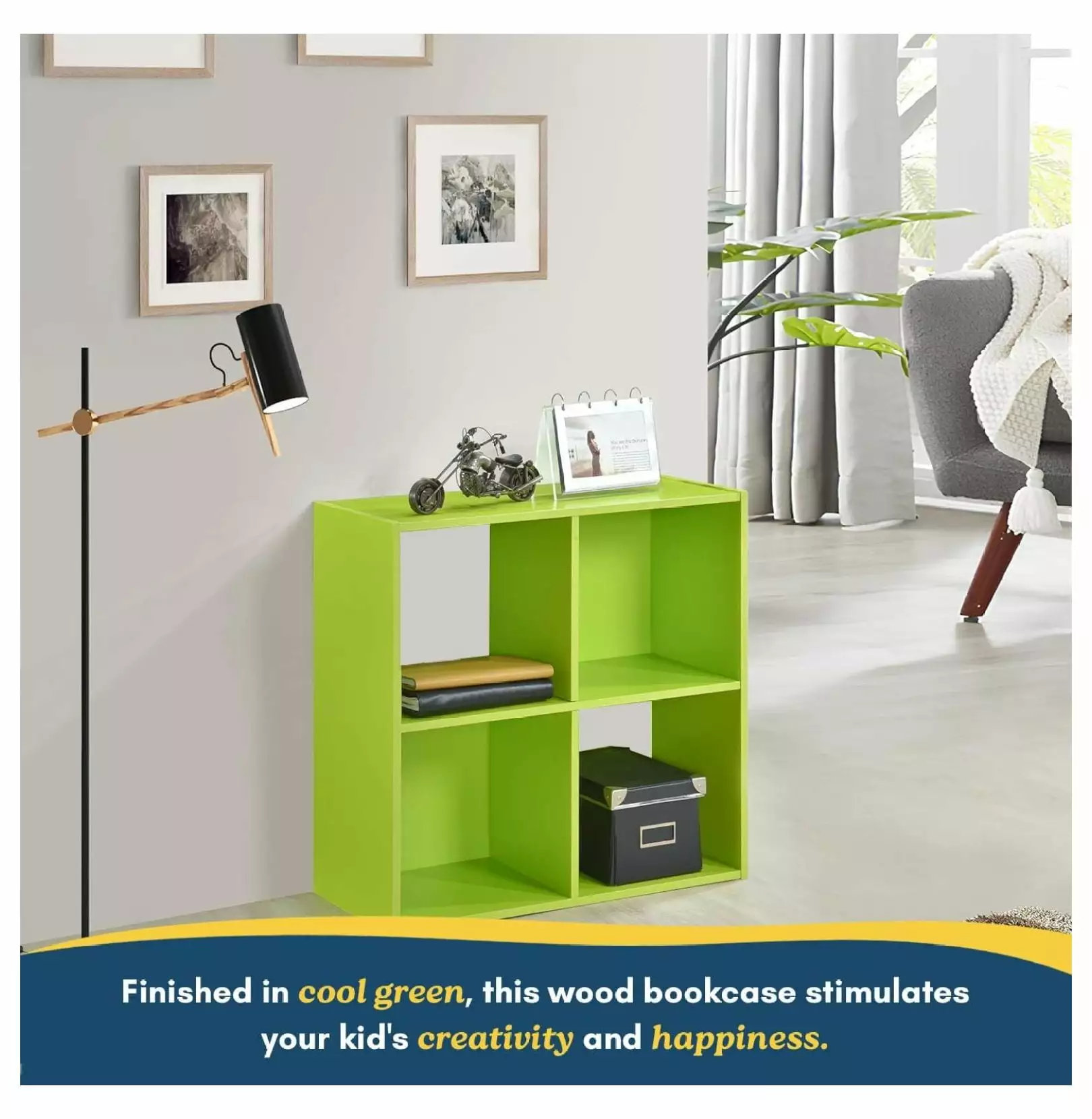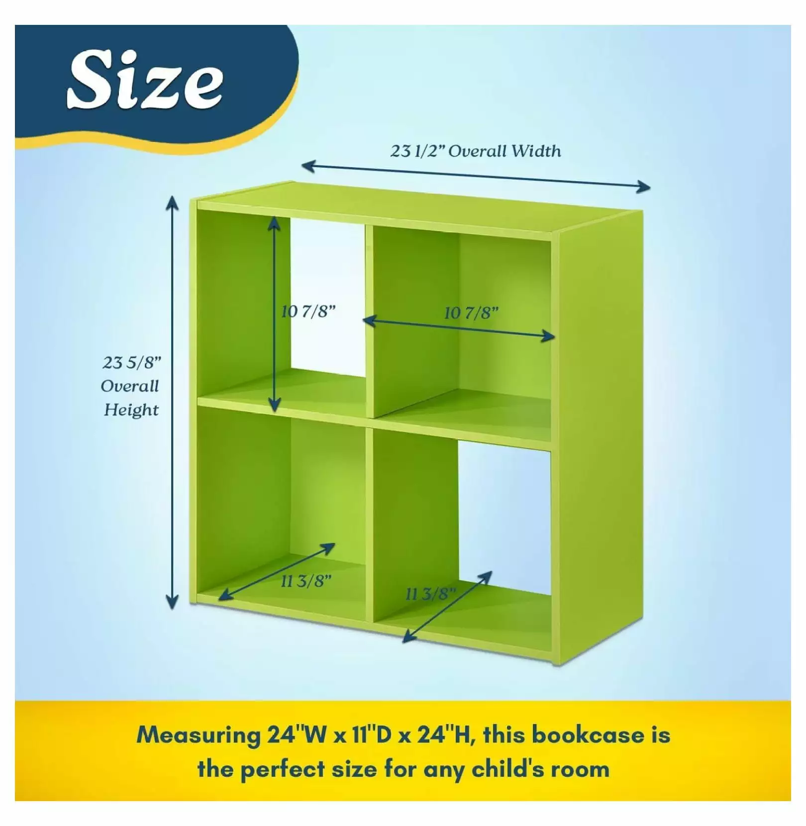 Brand Furniture – Jermine 4-Cube Bookcase. Kids Toy Storage Shelf Organizer. GreenProduct DescriptionAdd bright color and charm to your child’s room with the Jermine 4-Cube Organizer.The 4 square cubbies. two closed and two open. are perfect for storing toys. . games and more.FeaturesCollection Name: JermineFinish: GreenMaterial: Laminated WoodFoldable: NoFreestanding: YesNumber of Cubes: 4Back Panel: 2 Closed. 2 OpenAssembly: RequiredDimensionsOverall Dimensions: 24"W x 11"D x 24"HShelf Storage Size: 11"W x 11"D x 11"H