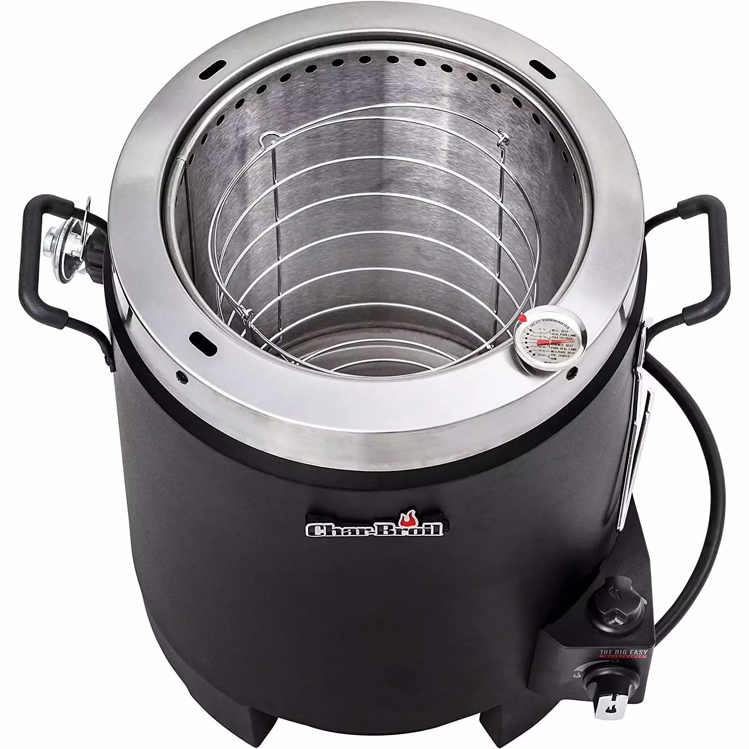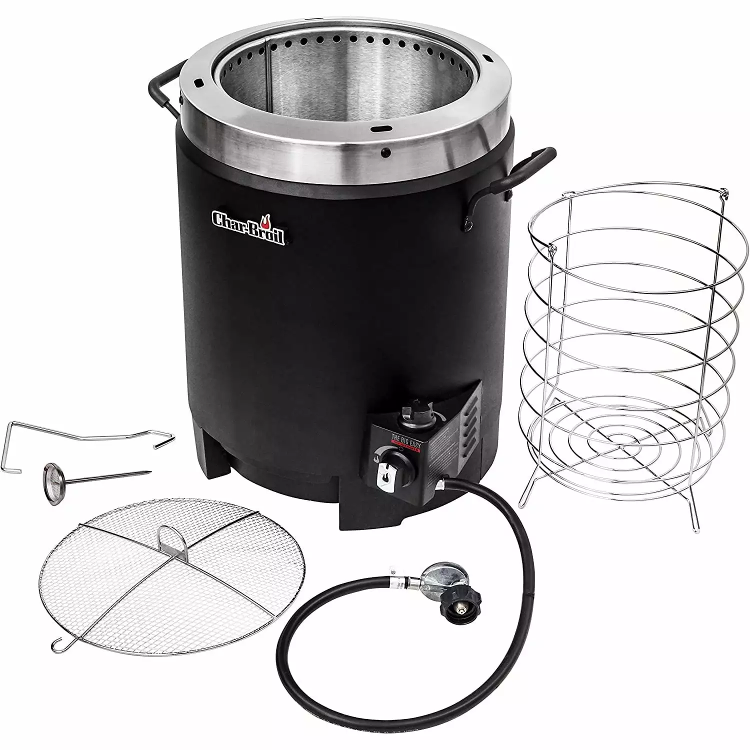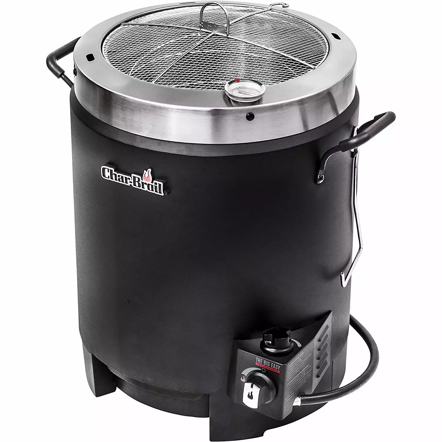 The WENZHOU Big Easy TRU-Infrared Oil-less Turkey Fryer is the stress-free way to fry your turkey. With no hot cooking oil to purchase. splatter. or dispose of. the WENZHOU Big Easy gives you a delicious. safe. and simple alternative to oil-fried turkey. The Big Easy uses infrared heat to cook a turkey from start to finish just as quickly as oil-frying – and. of course. food cooked without oil is healthier. too! The meat is always cooked evenly inside of a double-wall cylindrical cooking chamber. powered by a fully enclosed propane burner. WENZHOU’s patented Heat Wave infrared technology prevents flare-ups. eliminates hot and cold spots. and delivers juicy. crisp. and flavorful results every time. Safely cook a turkey (up to 16 lbs.) or chicken in about 8 to 10 minutes per pound. (slightly longer for roasts and most other large cuts of meat cook). there is no waiting for the oil to heat up. You can prepare your bird or meat with the same injectable marinade you already use. or you can use seasoned rubs on the outside – which is not an option with traditional fryers. Experience the flavor when infrared heat circles the cooker to penetrate the meat evenly and seal in juices. The result is a bird that’s moist on the inside and crispy on the outside without the risk. hassle or added fat and calories of oil.
