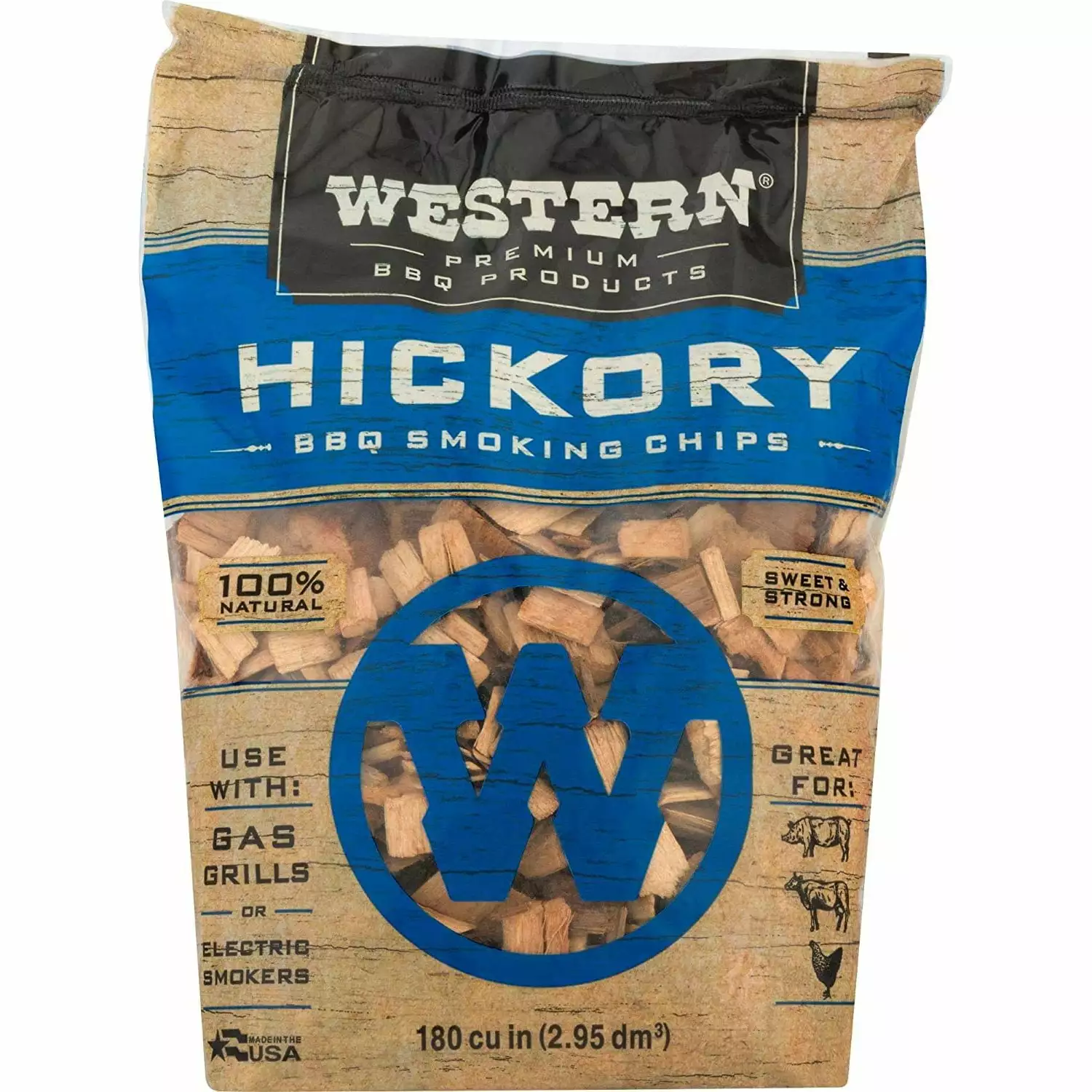 Add a hickory layer to your grilled favorites with Western Premium BBQ’s Hickory Barbeque Smoking Wood Chips. These flavorful wood chips work extremely well with any charcoal. gas. or electric grill. This package includes 6 bags of hickory smoking chips. You’re the barbeque master for a reason and adding these smoking chips will only add more depth to your savory meats. What’s amazing about these chips is that they complement almost any meat of your choice. These chips bring out the best in grilling classics like burgers and wings. to more refined eats like sirloin and salmon. Using these 180-cubic inch wood chips is extremely easy. If you’re using a gas grill. simply wrap the chips in foil or smoke box and place them on the grill prior to laying down your meats. Once the chips have started smoking. move them over to the side. and start cooking your meats. If you’re using a charcoal grill. refrain from using lighter fluid if possible to retain the optimal hickory flavor. Then place a handful of chips on a smoke tray or foil pouch and put them on the hottest part of the grill. Once they’ve started to smoke. remove them to one side and you can tack on your meats.