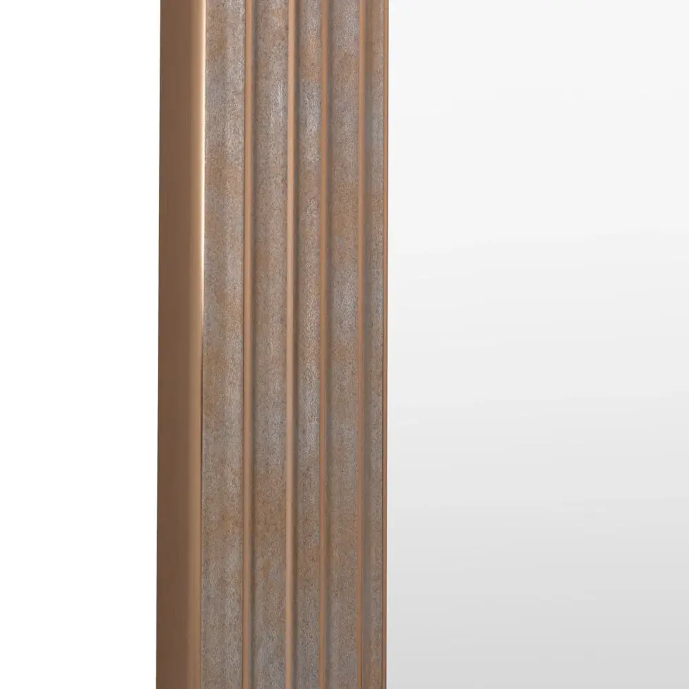Add a touch of vintage elegance to your home with our rustic gold ridged mirror. The mirror boasts a distinctive ridged design that catches the eye, while the distressed finish adds an authentic, timeworn charm. The square frame, with its rich gold tones and textured details, provides a sophisticated yet rustic appeal, making it a striking focal point for any room. First-rate for living rooms, bedrooms, or hallways, this mirror blends timeless beauty with sleek style.
