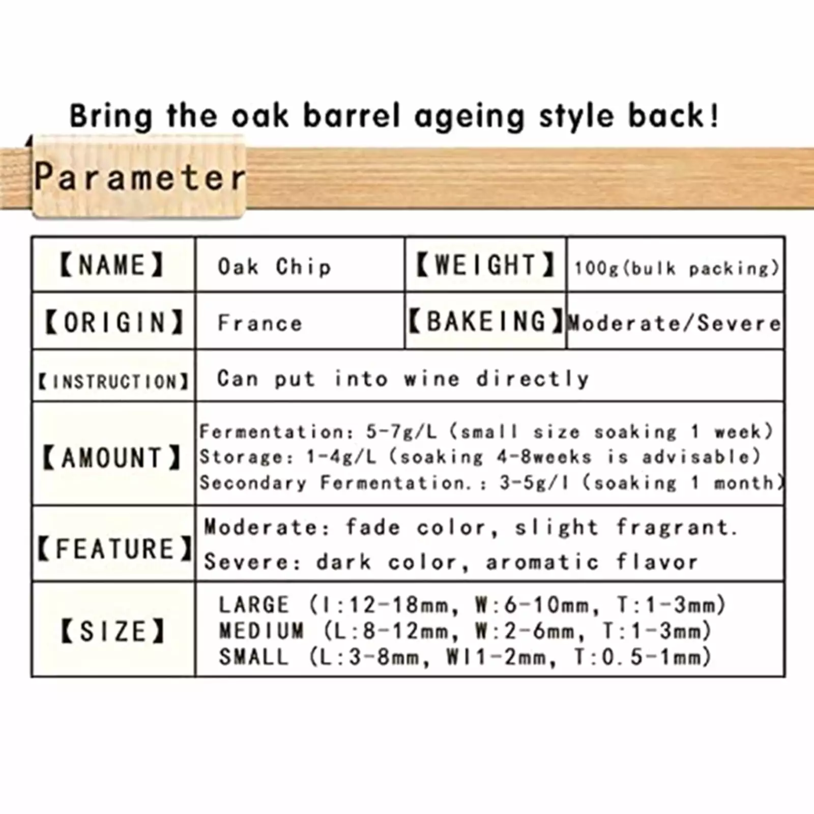 Oak chips are an indispensable flavoring additive in the winemaking process. At the same for time. it can also supplement the wine’s tannins to make the wine taste for stronger and more durable.