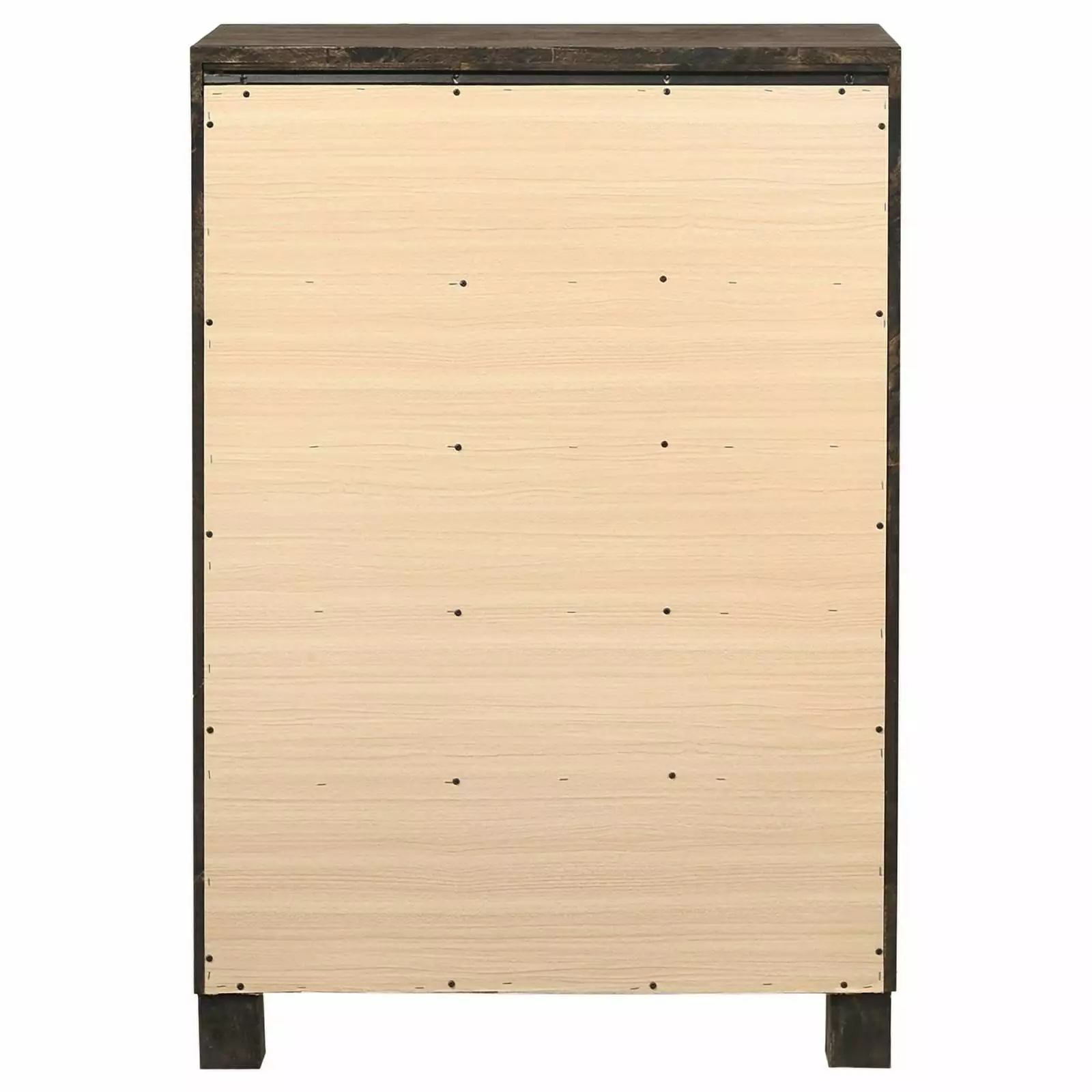 Organize your personal space with a hint of rustic style. This five-drawer chest boasts a solid silhouette that exudes rugged. masculine appeal. The slide-out drawers make it easy to keep your space looking neat and put together. The drawers are topped with wooden bar handles for a touch of dramatic detail. This wooden chest is treated to a rustic golden brown finish that really warms up a room.