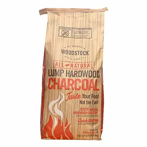 WOODSTOCK All-Natural Lump Hardwood Charcoal has to no llers added and is made form round oak wood resulting from tree pruning and forest thinning. With this 100% Natural Charcoal. let the fantastic avor of your food prevail!