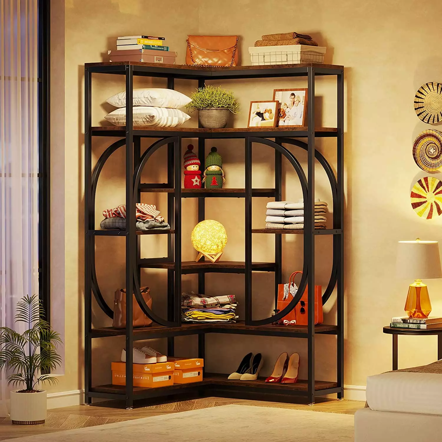 - [Multi-al Occasion Applied] With an industrial appearance and al design. this etagere corner shelf stand is suitable for any room and is always in full play. Used as a book shelf. plant stand. display shelf. corner bookcase in the home office. or display console anywhere you.