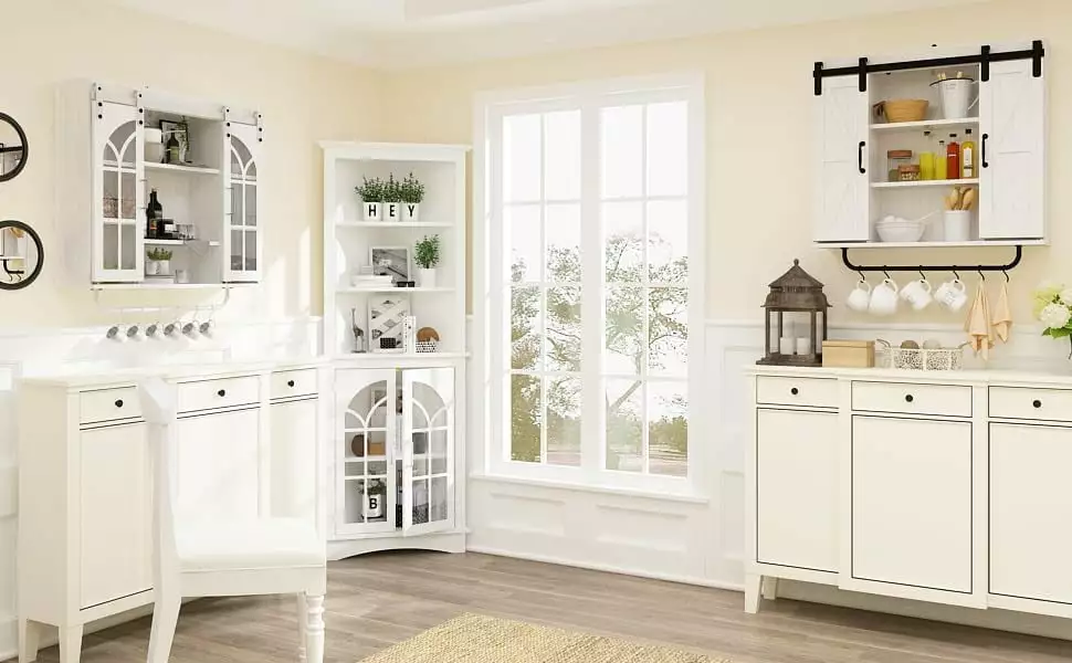The elegant appearance. antiqued glass cabinets. and clean lines show rustic features. Besides this. the tall cabinet is changeable for various styles. bookcases/storage cabinets/display shelves/buffet cupboards.