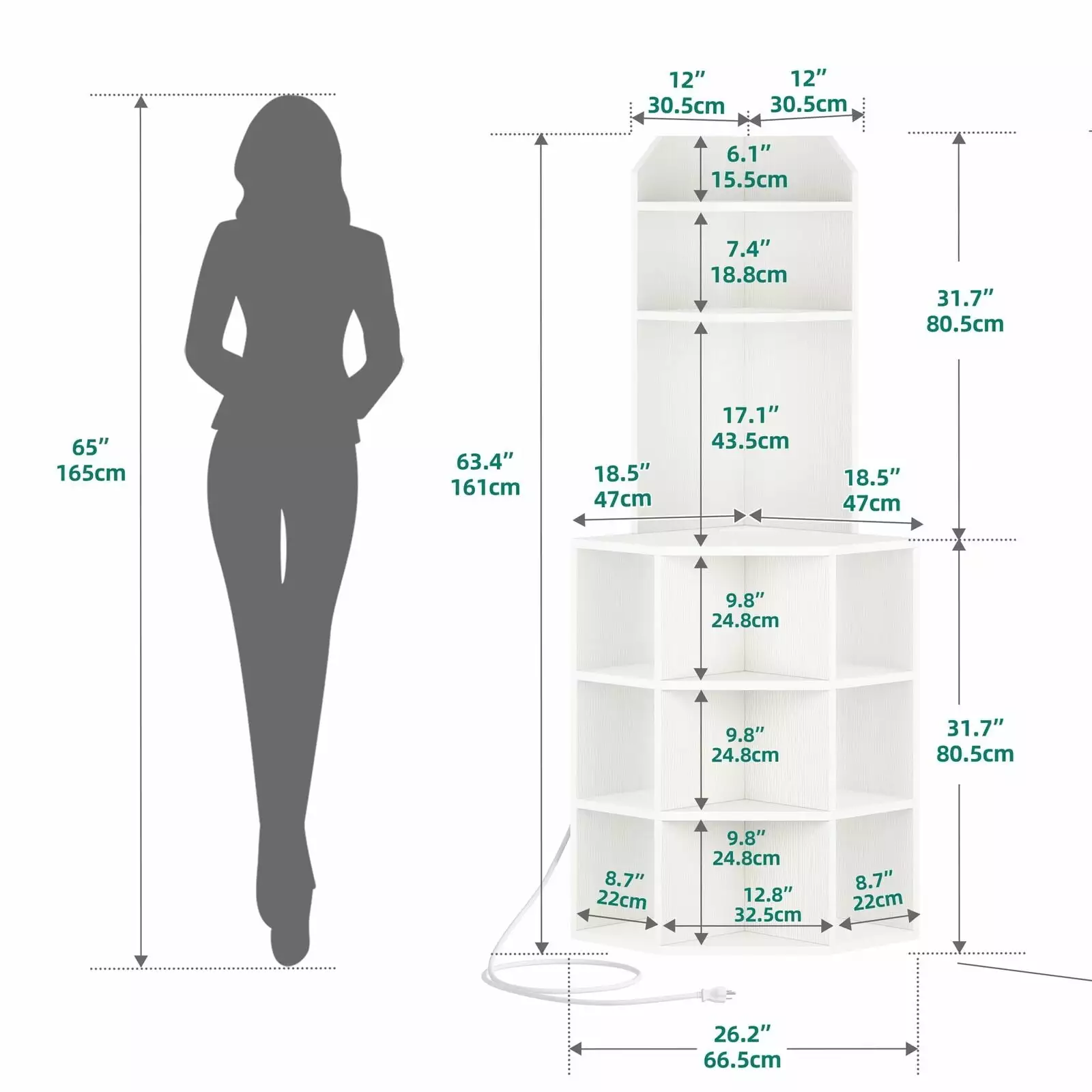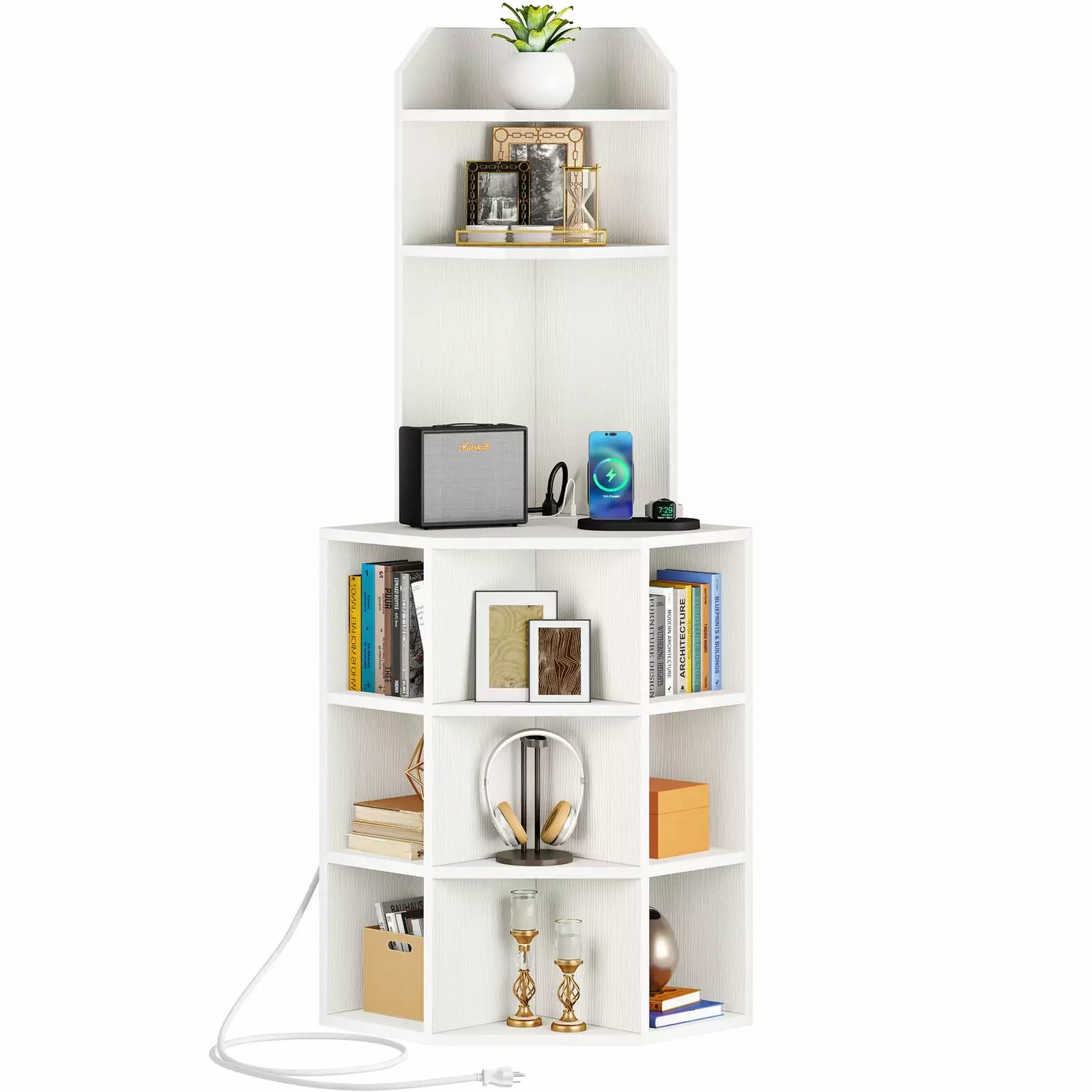 ZGBY Corner Cabinet Corner Bookcase With Usb Ports And Outlets For Playroom Bedroom