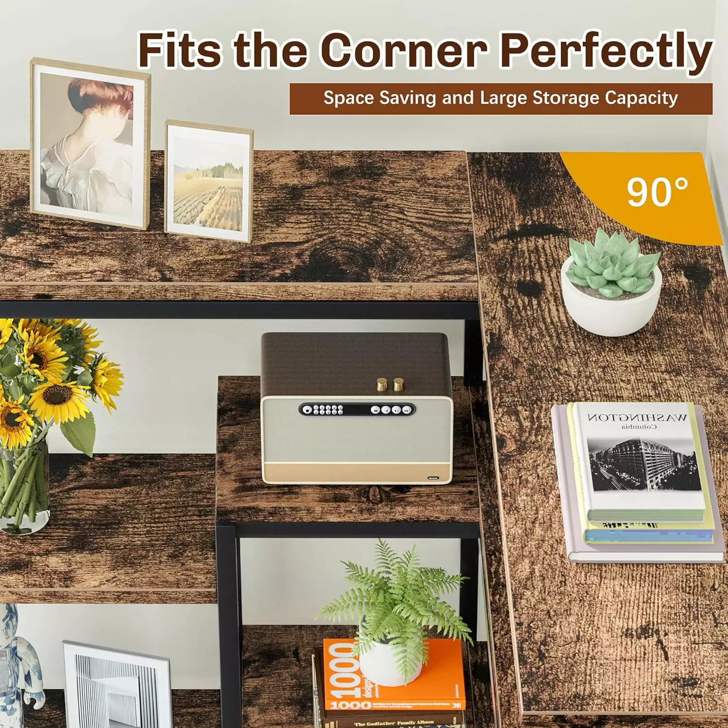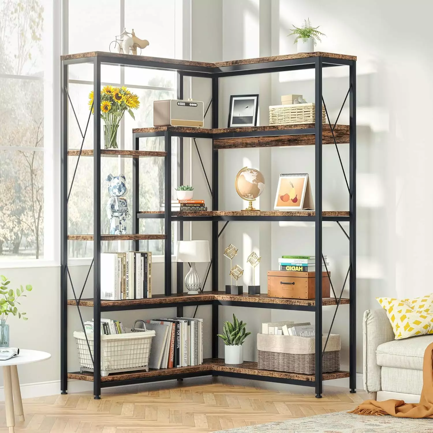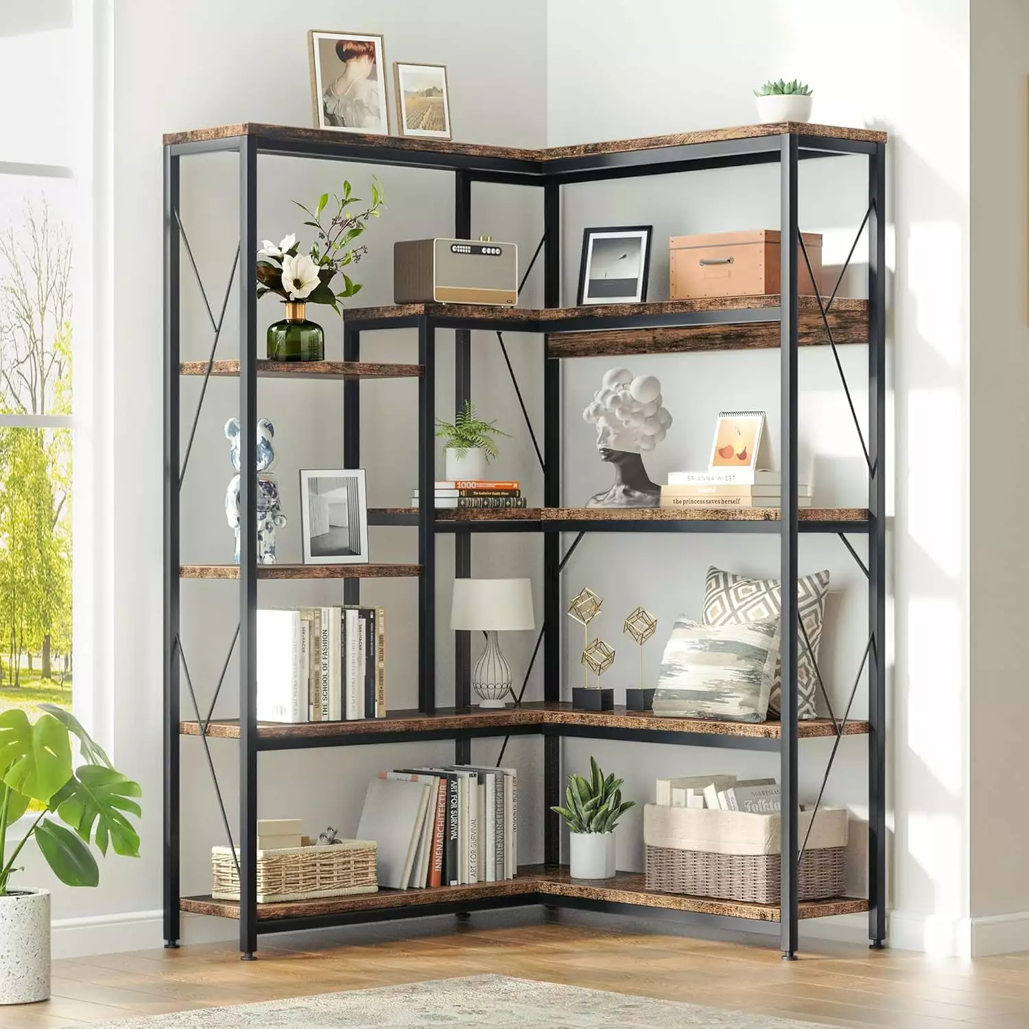 - [Space Saver Corner Bookcase]This 5-Tier industrial corner shelf can provide more storage space for books. plants. decorations. photos and more. Maximize the use of corner space and keep keep the corner tidy.You can put this 11 open shelves in the office. living room. bedroom.Our corner bookshelf can meet all your storage needs.