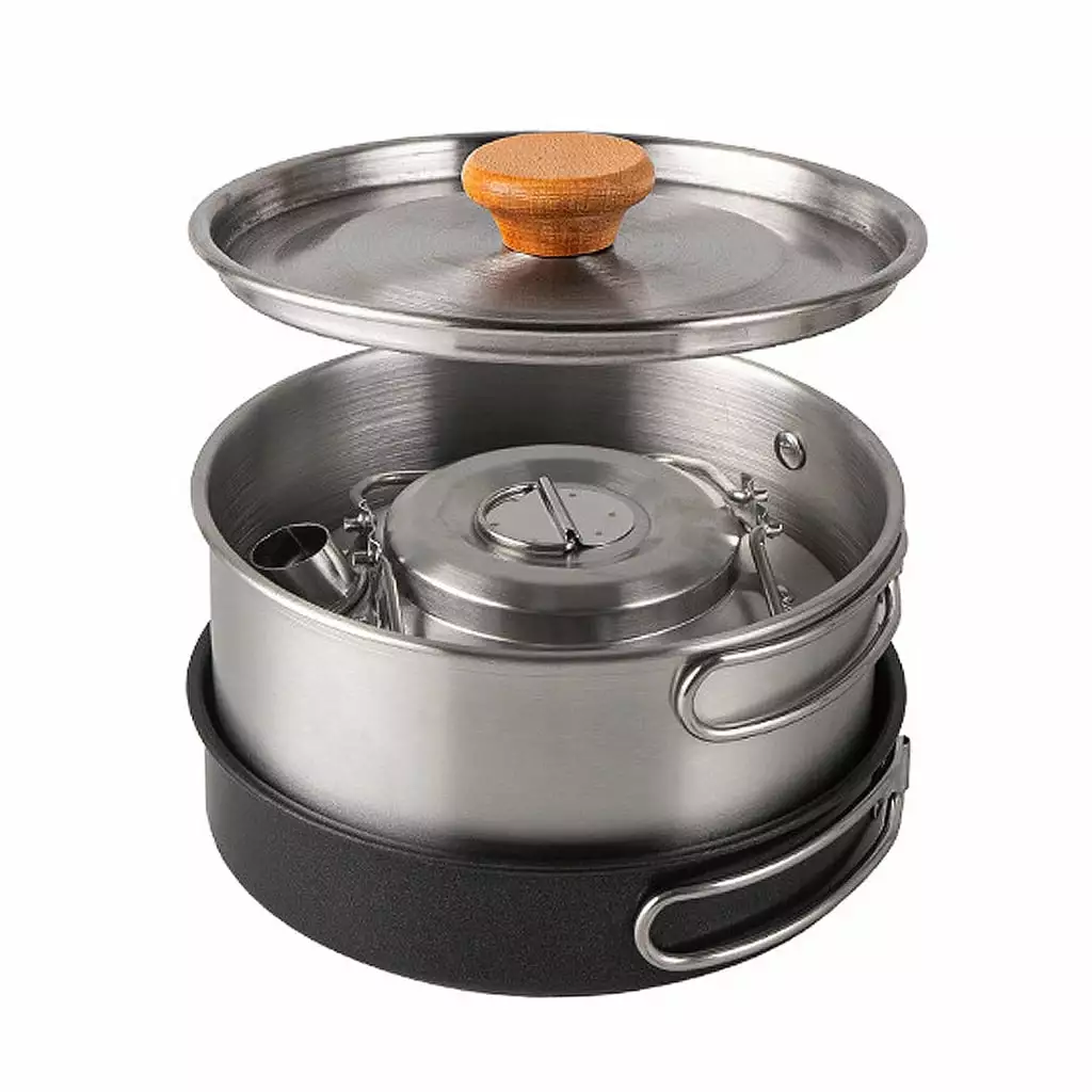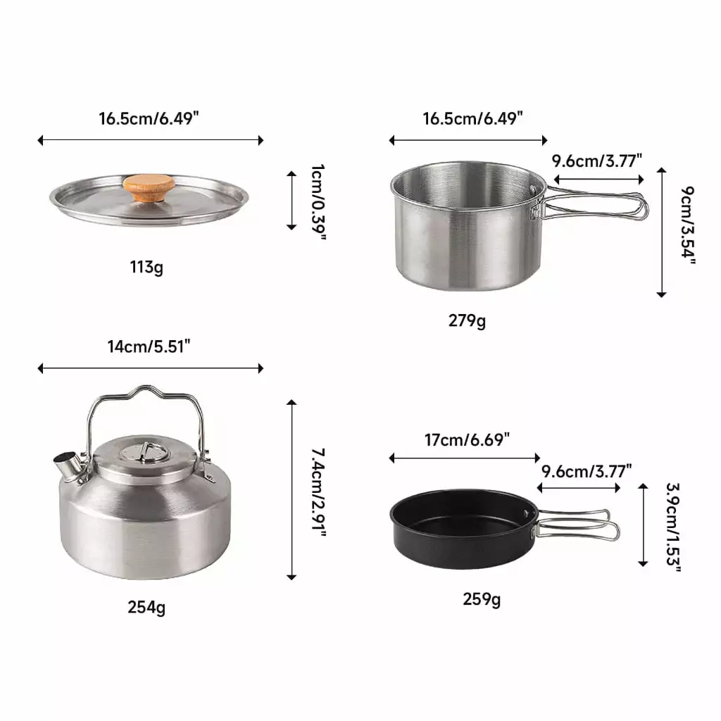 - Material: Quality 304stainless steel camping cookset conducts heat quickly and is survival gear that is built-to last.
